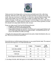 The casual language and popular topic will make this assignment all the more engaging for your middle school math class. They use Starbucks beverage sales and nutrition values to practice ratios, proportions, statistics, and...