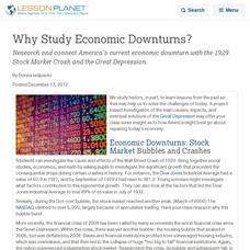 Research and connect America's current economic downturn with the 1929 Stock Market Crash and the Great Depression.