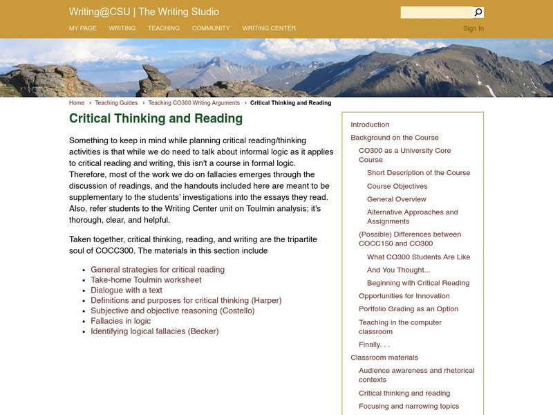 Colorado State Writing Center: Critical Reading
