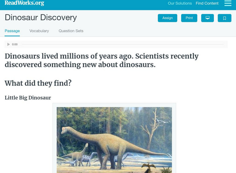 [Free Registration/Login Required] Students read text, a map, and a chart about dinosaur fossils. A question sheet is available to help students build skills in comparing and contrasting.