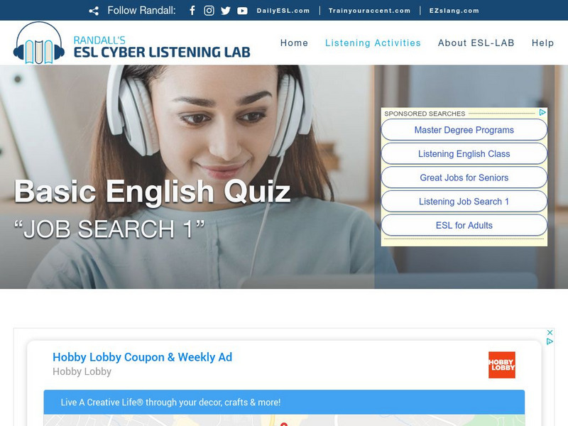 Esl Cyber Listening Lab: Basic English Quiz: Job Search 1