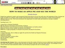 Students have a class discussion on how the variety of foods we use on a daily basis come from all over the world. They identify foods that they are familiar with that come from other places.