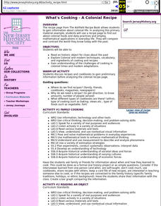 Eleventh graders explore Colonial and modern techniques, vocabulary, and ingredients of cooking and recipes. They gain understanding of the challenges of cooking in colonial times and modern adaptations.
