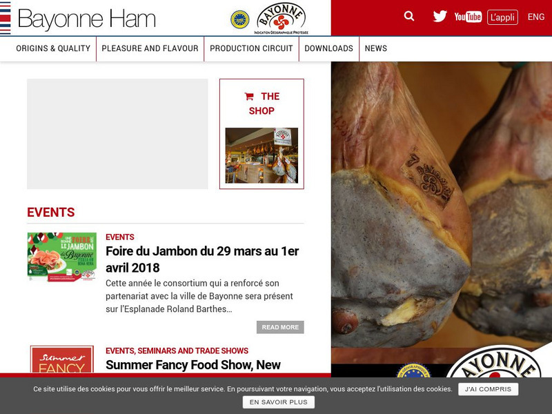 This site is about Bayonne's famous ham, one of the best in Europe. On this site, you can read about its history, its awards, its links to the local geography, and you can find some recipes.