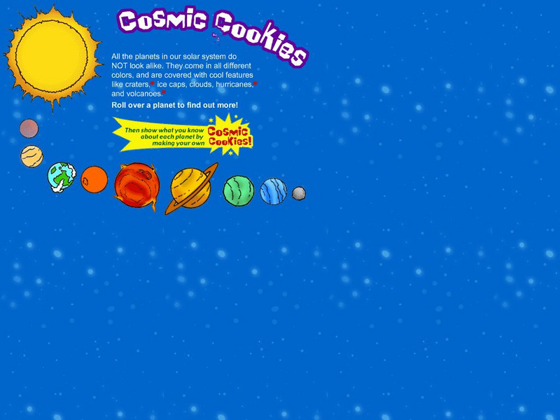Roll your mouse over the planets in our solar system to read a vignette about each. Then, link to the recipe for directions to create miniature planet cookies that look like the real thing.