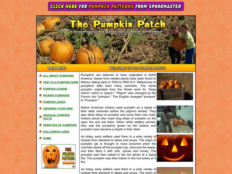 This site offers everything you ever wanted to know about pumpkins! Learn some great pumpkin facts, take a virtual trip to a pumpkin farm, learns some tips for picking the perfect pumpkin, and read some great pumpkin recipes!