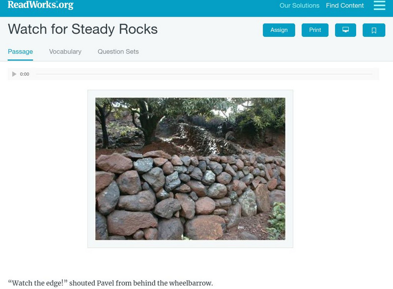 [Free Registration/Login Required] A literary text about two boys who have find themselves in danger while hiking on a trail. A question sheet is available to help students build skills in reading comprehension.