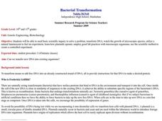 Pupils explore DNA recombination. In this biology instructional activity, students observe the growth of microscopic species. They predict the phenotype of the transformed colonies.