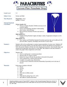 Learners will have fun creating a parachute to collect data with. They will construct the parachute in small groups, measure the materials, and create an observation sheet. Then they drop the parachute and make predictions about how long...