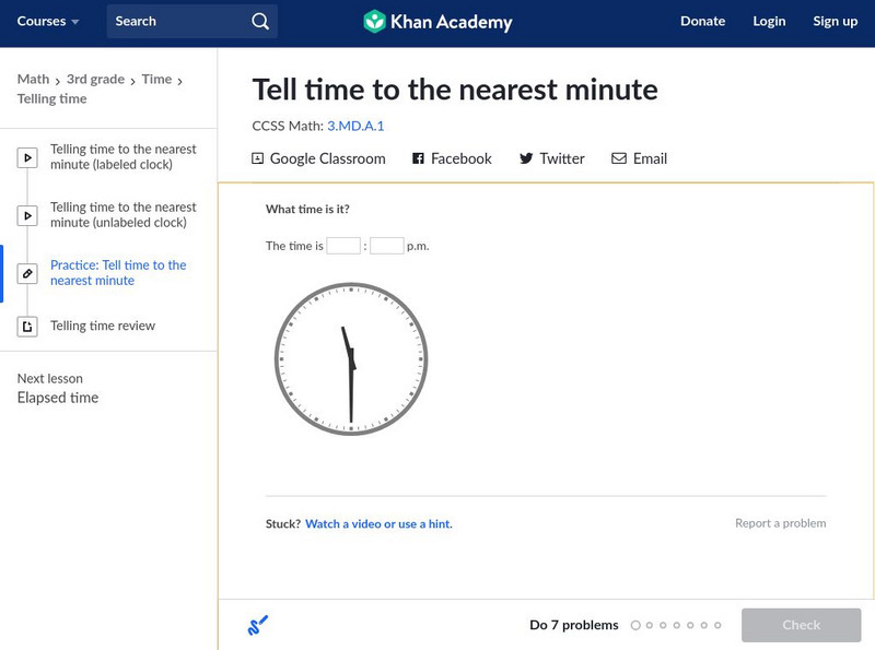 Khan Academy: Practice: Tell Time to the Nearest Minute