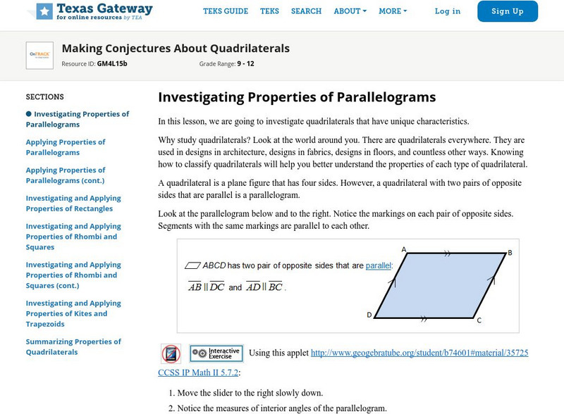Texas Gateway: Making Conjectures About Quadrilaterals