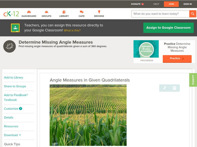 Ck 12: Geometry: Angle Measures in Given Quadrilaterals