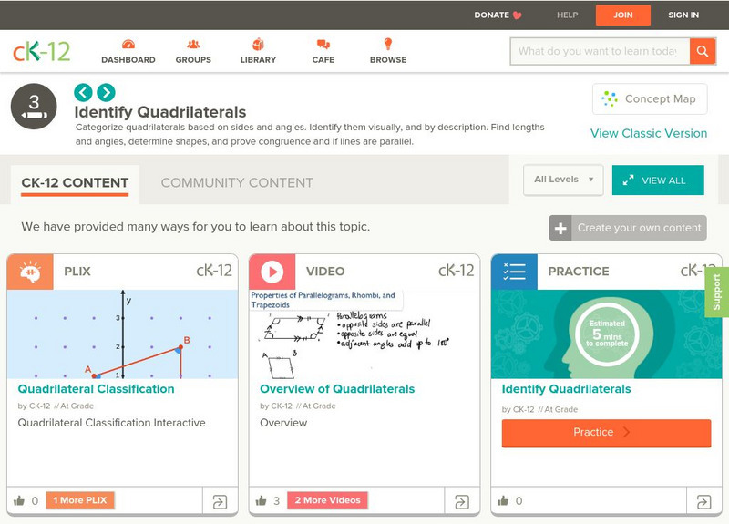 [Free Registration/Login may be required to access all resource tools.] Cursor down if needed to locate the video "Visually Identifying Quadrilaterals (Trapezoids, Parallelograms, Rectangles, Squares, Rhombi)." Students watch a video and...