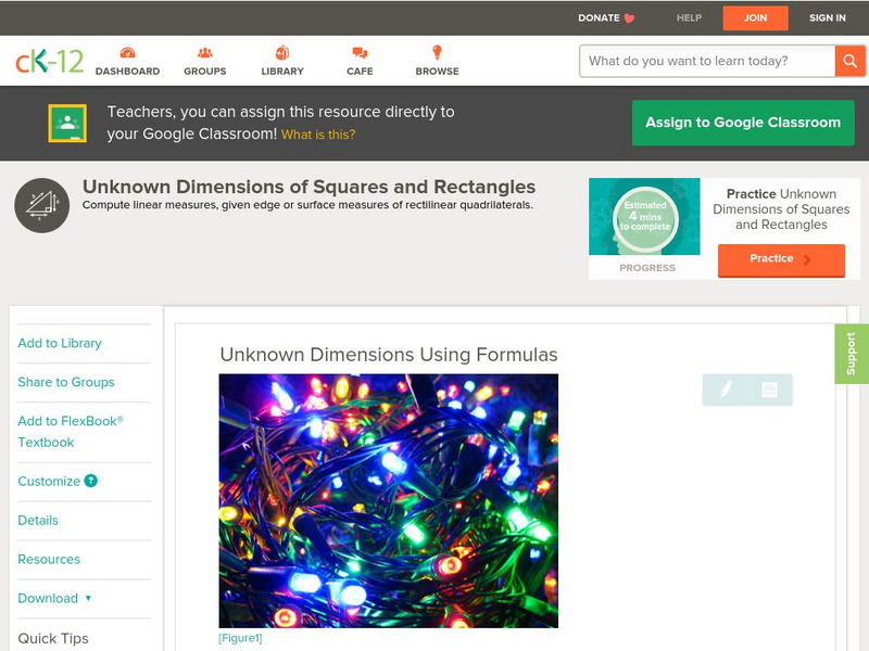 Ck 12: Geometry: Unknown Dimensions Using Formulas Grade 7