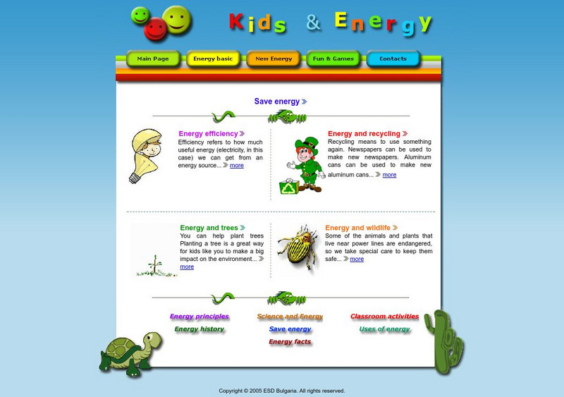 Looks at four different ways people can save energy - through energy efficiency, recycling, planting trees, and protecting wildlife.