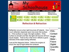 Students explore light. In this properties of light lesson, students define the terms refract, reflect, and diffract after listening to the teacher's description. Students listen to the book Light Magic and observe a spoon in a glass of...