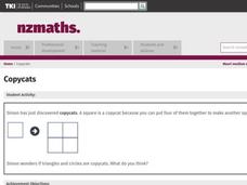 Learners examine a selection of shapes and identify which shapes tessellate and why. They design and make a pattern which involves translation, reflection, or rotation. Students describe the features of 2-dimensional and 3-dimensional...