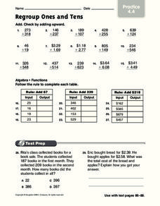 In this addition worksheet, 3rd graders decide when to regroup in addition problems after reviewing the steps. They use a workmat and place value blocks as they complete 4 problems. They identify how many tens and ones there are and...