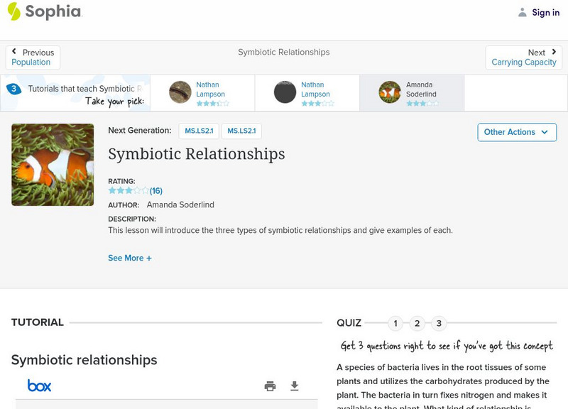 [Free Registration/Login may be required to access all resource tools.] Overview of symbiotic relationships.