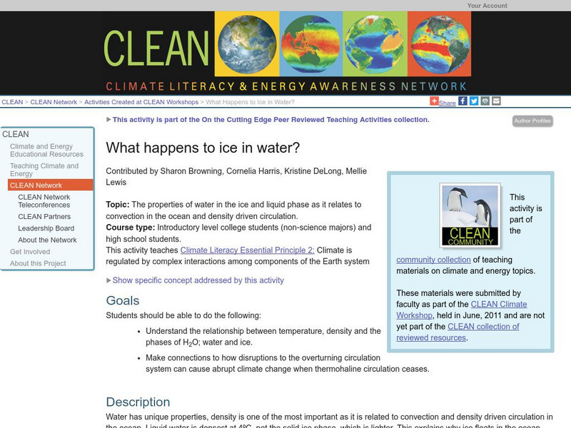 Students investigate the properties of water in the ice and liquid phase as it relates to convection in the ocean and density driven circulation, and ultimately the climate.