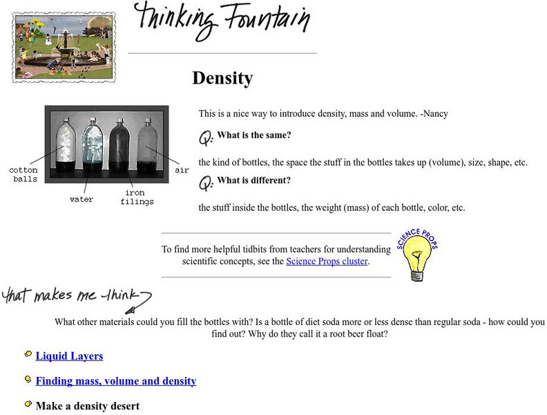 As part of a larger site called "Getting started in Chemistry," this site examines various topics related to the densities of substances and materials. Included in the study are properties of solids, liquids and gases, and how density is...