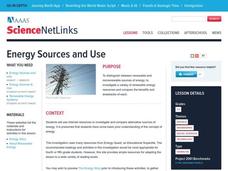 Students investigate energy conservation. In this energy conservation and analyzing data lesson, students identify and explain several energy sources and research renewable and nonrenewable energy sources. Students use statistics...