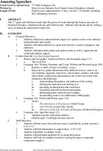 Students study the speeches of Frederick Douglas, Abraham Lincoln, and Chief Joseph. Students write a story set during the Nineteenth Century Era. Students present their story to the class. Handouts and worksheets are included in the...