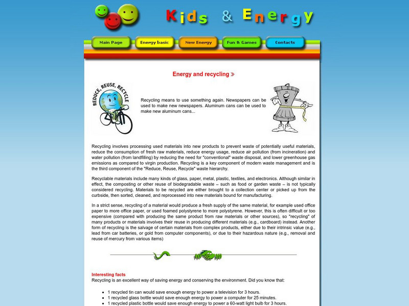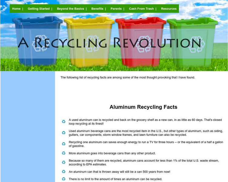 This lesson plan site focuses on defining recycling, identifying recyclable materials, categorizing recyclable materials, understanding the importance of filtration and identifying the recycle symbols.