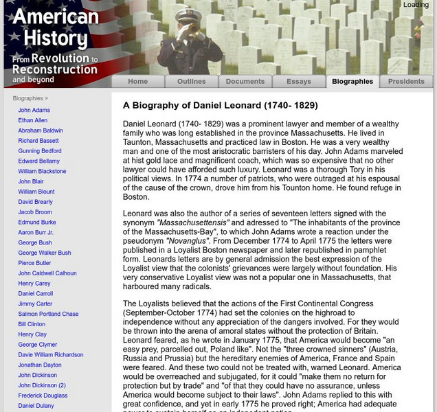 American History: Biographies: Daniel Leonard (1740 1829)