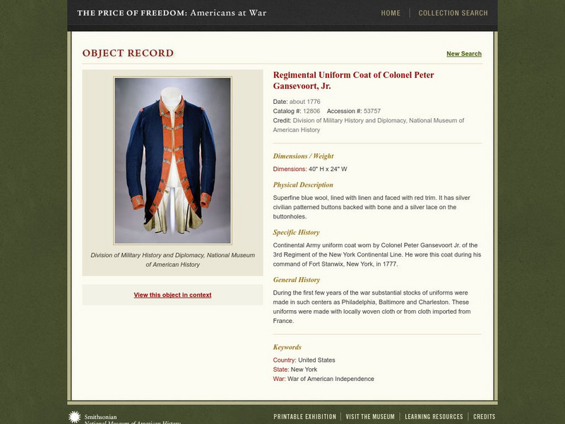 National Museum of American History: Price of Freedom: Regimental Uniform Coat