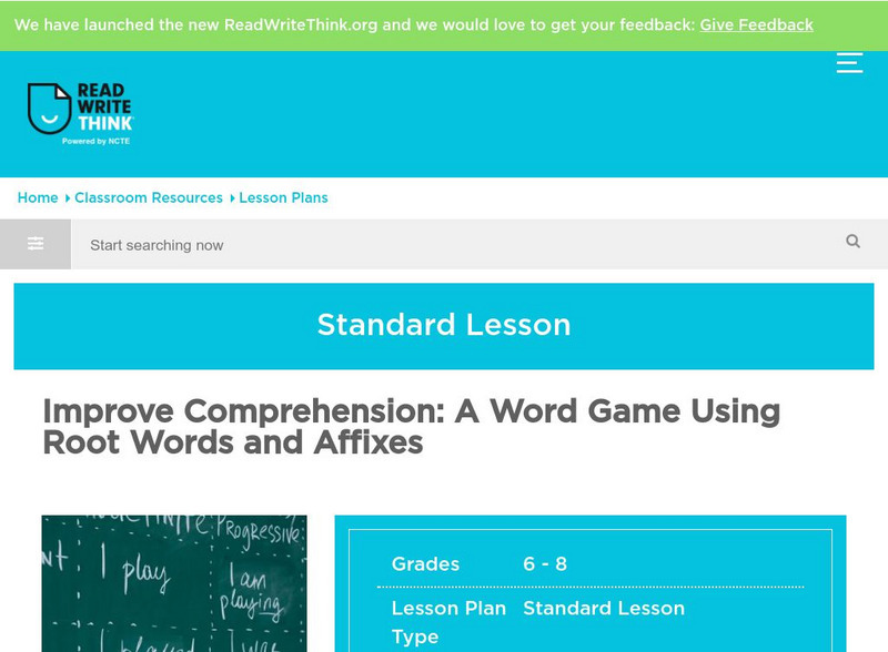Read Write Think: Improve Comprehension: A Word Game Using Root Words and Affixes