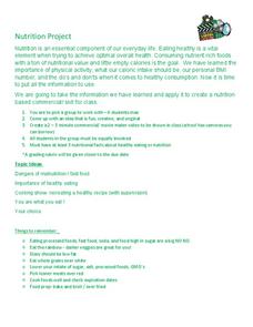 A salad of nutrition-themed videos can be enjoyed by your health class as a wrap-up to the nutrition unit. Groups select a topic and create a two-three minute skit or commercial to be filmed and shared. If you assign each group a...