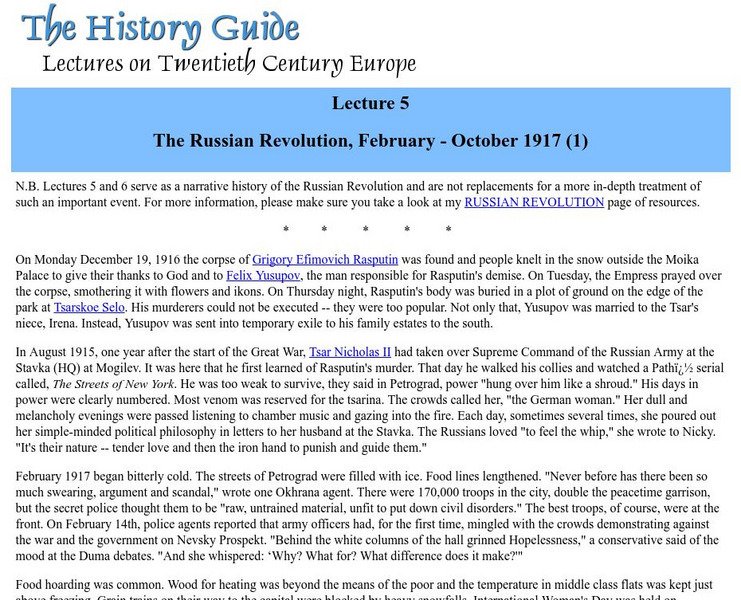 This site provides an excellent lecture providing a wealth of information about the events of the Russian Revolution in 1917.