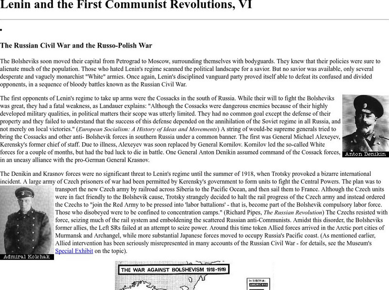 This site from The History Guide provides a selection from the Lectures on 20th century Europe. Discusses the impact of the Bolshevik revolution on Russia.