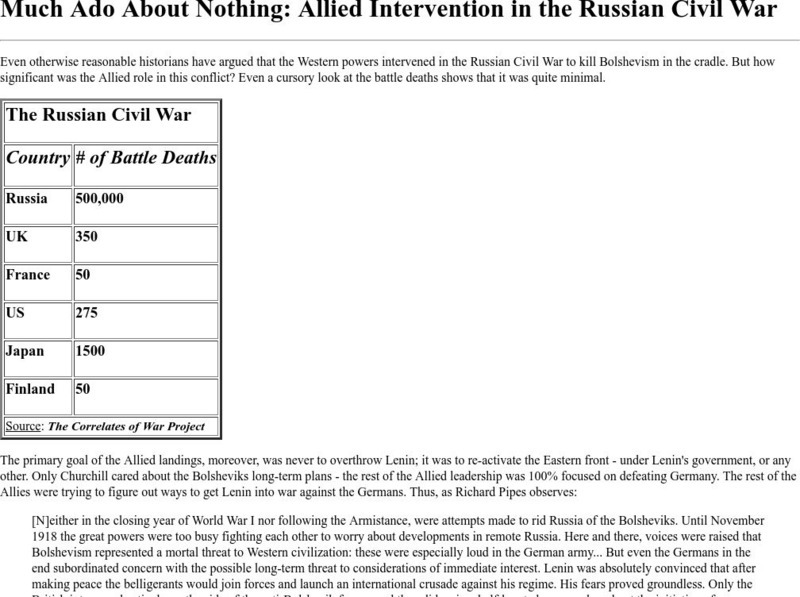 A brief overview of the intervention and human costs of the Russian civil war. Gives a detailed background of the war.