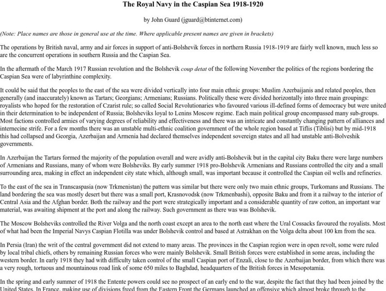 Wwi Document Archive: The Royal Navy in the Caspian Sea