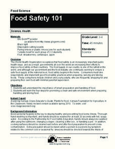 Students recognize that safe food preparation is important to good health. In this food safety instructional activity, students participate in an activity students separate, clean, chill, and cook food safely. Students use Glo Germ...