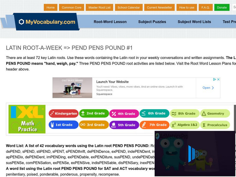 My vocabulary.com: Latin Root a Week: Pend Pens Pound #1