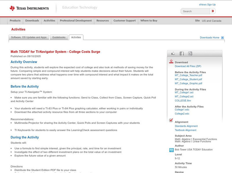 Texas Instruments: Math Today for Ti Navigator System College Costs Surge