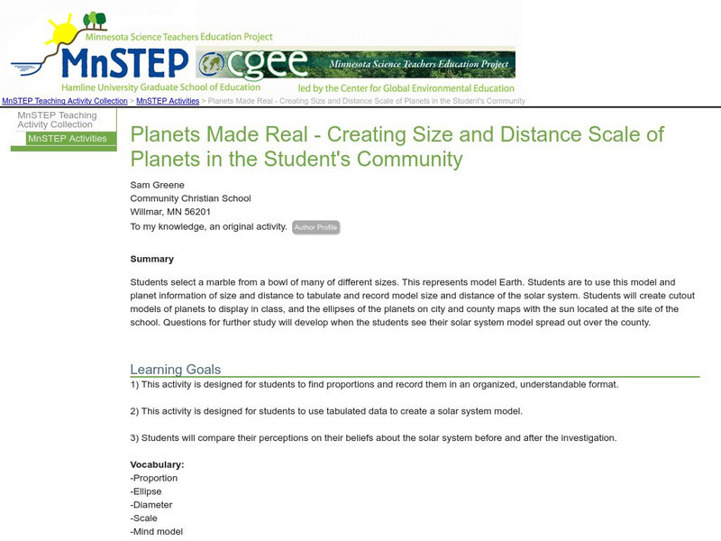 An activity where students build a scale model of the solar system based on a marble they pick from a bowl. After choosing a marble that represents Earth, students must calculate the size of the other planets and the sun. Site includes...