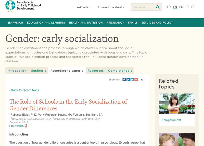 Encyclopedia on Early Childhood Development: Gender: Early Socialization