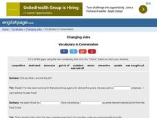 For this ESL occupations worksheet, students read a set of 10 job descriptions and determine the job, clicking on an answer button to check answers.
