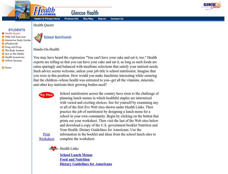 Glencoe Health and Fitness: Health Quests: School Nutritionist