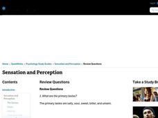 In this psychology worksheet, students complete a 5 short answer quiz on sensation and perception. They explain how the five body senses are used to collect information about the environment.