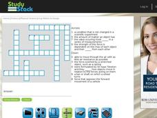 In this online interactive physical science crossword puzzle activity, students use the 9 clues regarding motion and design to find the appropriate answers to complete the word puzzle.