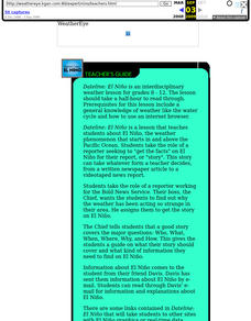 Students explore El Nino and take the role of a reporter gathering the facts for a news story. Reports are presented orally, like a newscast, written or in whatever form the teacher prefers.