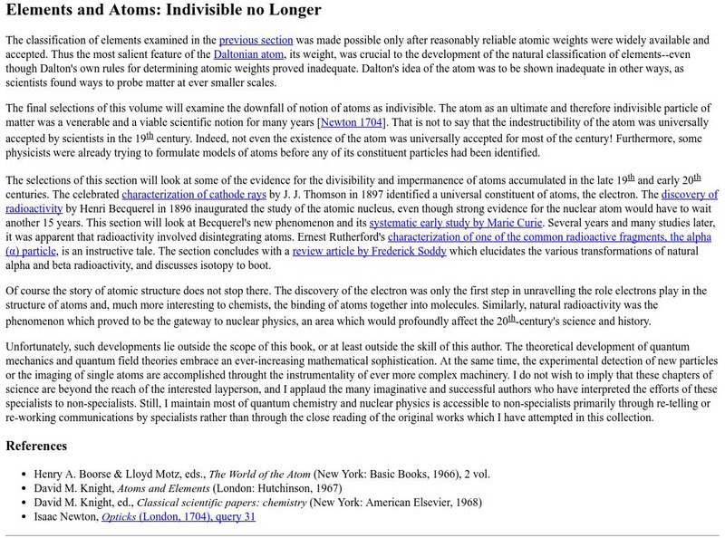 Le Moyne College:elements & Atoms, Indivisible No Longer