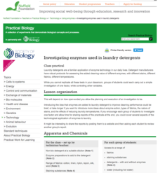 It's a win-win situation: learn about enzymes and get clean clothes, too. Young scientists add enzymes to a dilution of laundry detergent. They apply them to stained fabrics to determine the effectiveness of the enzyme-filled detergents.