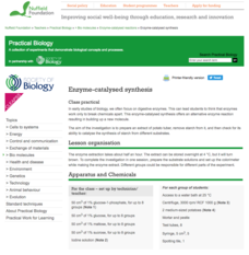 Students discuss the functioning of the digestive system and the specific enzymes present. They observe the action of amylase on starch to identify characteristics of enzymes then perform an experiment on the effects of temperature on...