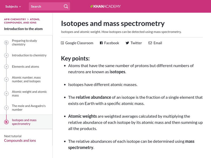 Tutorial explains isotopes, atomic weight and how isotopes can be detected using mass spectrometry. Examples are given.